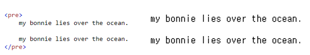 <pre> - prefirnatted text 를 정의한다. 해당 element 안에 text 는 폰트가 고정되어 있으며, 라인과 공간이 보존된다.
