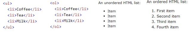 - ul : unordered list - ol : ordered list
