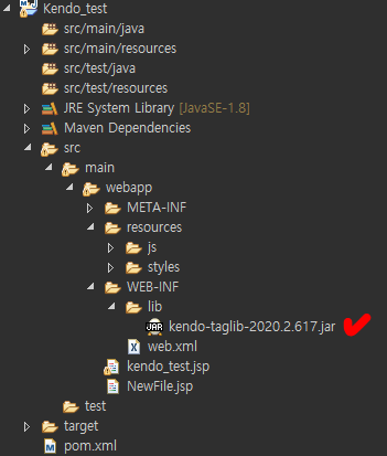 "\wrappers\jsp\kendo-taglib\kendo-taglib-[version].jar " 을 스프링 프로젝트 내의