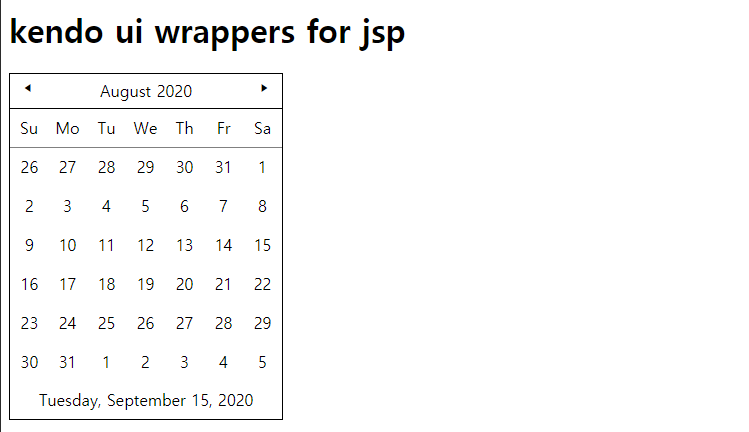 간단하게 설정을 주기위해 kendo ui 에 내장되어 있는 calendar 를 사용해보았다.