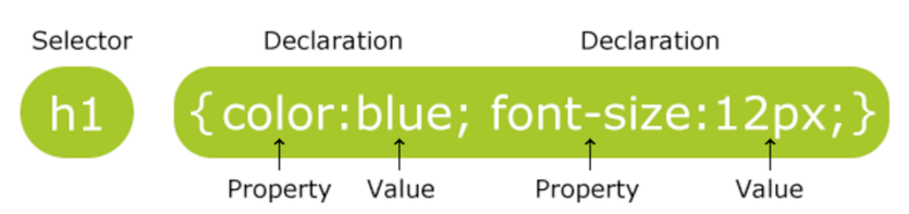 위의 의미는 h1 태그의 폰트 색은 블루, 폰트 사이즈는 12px 로 지정하겠다는 의미이다.