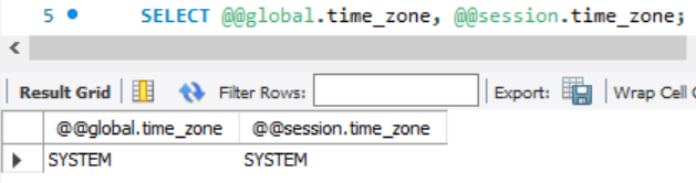 SELECT @@GLOBAL.time_zone, @@SESSION.time_zone;