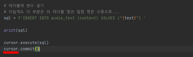 그 이후 해당 에러는 사라지고 DB 에 원하는 데이터가 잘 들어갔다