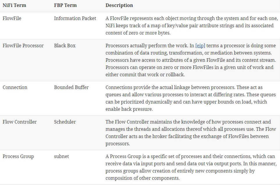 nifi 의 기본 디자인컨셉은 FBP(Flow Based Programming) 에서 가져왔다.