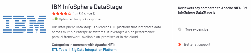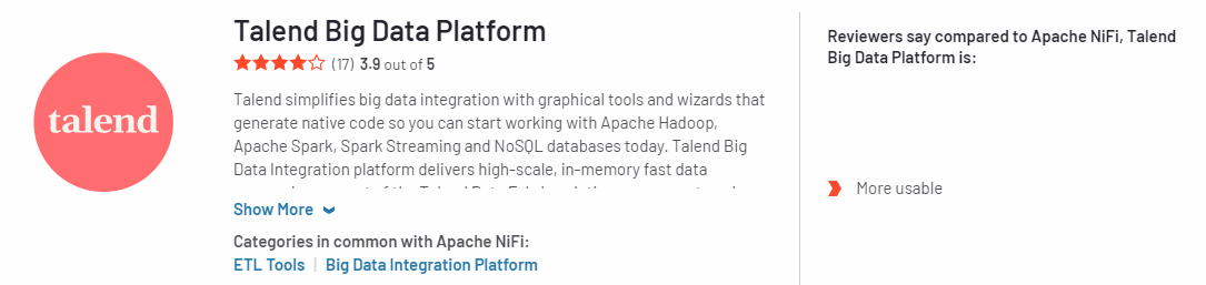 - 멀티플 기업 시스템들에 걸친 데이터 통합 ETL 플랫폼 분야의 선두