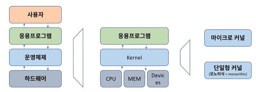 커컬의 종류는 마이크로 커널과 모노리식(단일형) 커널로 나뉜다