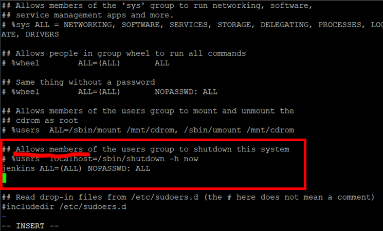 jenkins ALL=(ALL) NOPASSWD: ALL