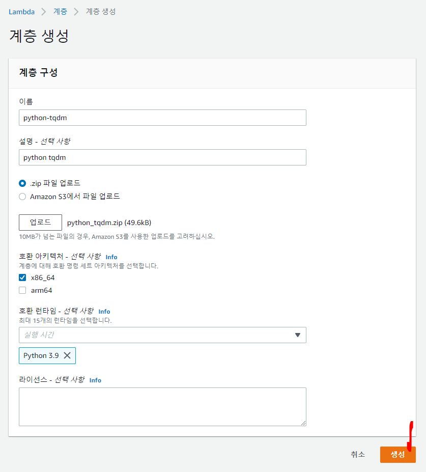 2) lambda 계층에 들어가서 zip 파일을 업로드한다.