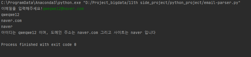 이메일을 입력하면 도메인 주소와 아이디를 분류해주는 코드이다.