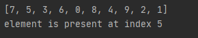 print('element is at index', str(result))