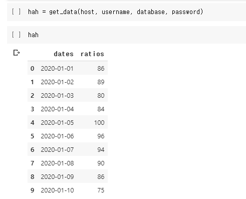 get_data 형태로 mysql에서 데이터를 가져오고 난 후에 데이터 프레임으로 변환시키는 함수를 만들었다.